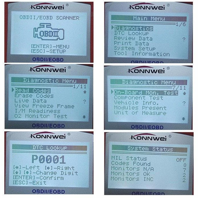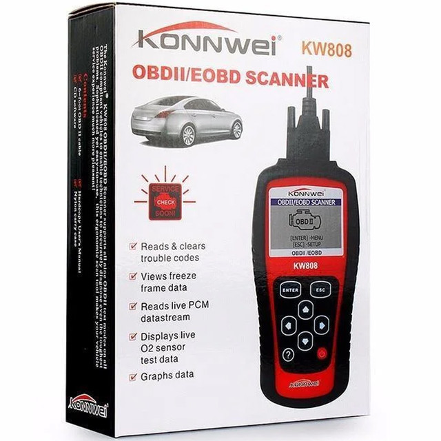 Автосканер OBDII / EOBD Konnwei KW808 використовується для моніторингу, зчитування і видалення кодів помилок двигуна. Функціонує при температурі до +70 градусів.