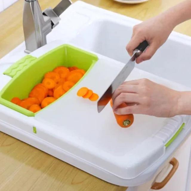 Це унікальне пристосування, яке розташовується на кухонній мийці. Дошка обробна має вбудований друшляк, у якому ви відразу можете промити потрібні продукти. Дошка дає змогу мити та шаткувати овочі в одному місці, не використовуючи додаткової посуду економлячи вільний простір кухні.