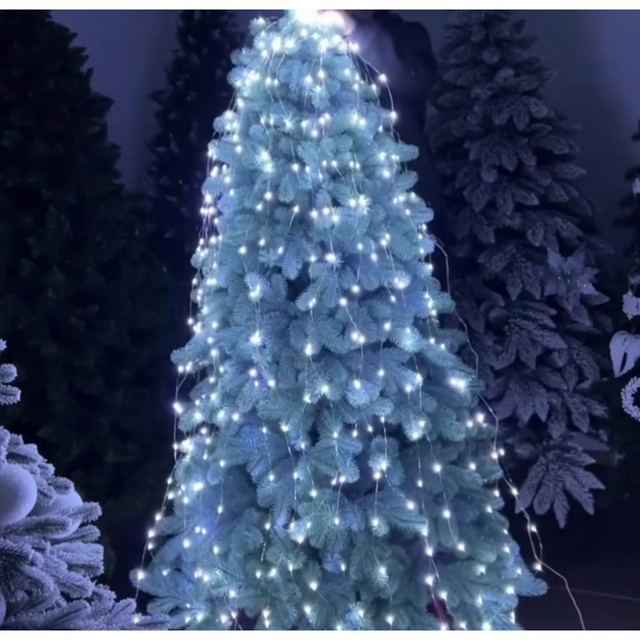 Вона виконана у вигляді тонких гнучких дротів, на яких рівномірно розташовані мініатюрні світлодіоди. Світлодіоди випромінюють холодне біле світло, створюючи атмосферу свіжості та чистоти.